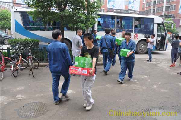 7月14日,公司副总经理凡殿才、总经理助理高明林、党委办主任毛永贤、工会副主席戚伟、杨波、团委书记冯婷婷等一行,代表公司党工团赴临泉中能化工慰问不顾高温酷暑坚守一线学习航天炉操作技术的学员们,并为他们送去防暑消暑慰问品。