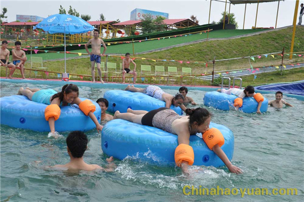 来自生产各团支部的七十多名青年欢聚在一起,尽情地享受盛夏中的清凉水世界。此次活动,精彩纷呈、别开生面。“大珠小珠落玉盘”游戏听起来是那么的诗意浓浓,要求在一定的时间内,用游泳的方式把水面上的兵乓球夹到指定的盘子内,不仅对选手们的速度提出了要求,更对技巧提出了挑战,大家个个争先恐后、使出浑身解数;“水上风火轮”游戏要求选手们要有较好的身体平衡能力和动作协调力;“无敌水上漂”游戏使女选手们真切地过了一把 水上“飘”的瘾。比赛之余,青年朋友们有的悠闲地划着小皮船;有的打起了水仗;更有大胆的青年朋友玩起了水上特技。呐喊声、嬉笑声,水面上到处洋溢着欢乐的笑脸。