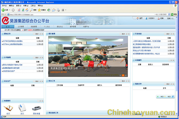 在公司领导的高度重视和各部门人员的紧密配合下,华球(中国)集团OA办公系统经过北京普巴安徽分公司技术人员紧张有序地程序研发、修改完善、测试调试, 11月1日,该系统正式上线试运行。系统包含公文管理、信息管理、个人办公、综合办公、邮件管理、沟通平台六个模块。OA办公系统的成功上线将进一步提高公司现代化信息管理水平和决策效率。同时,将为公司的高效办公,工作流程标准化、制度化奠定坚实基础。