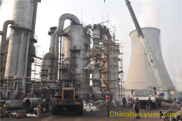 此次4#变换工艺整改,是将原来的中低变工艺彻底转变全低变流程。为确保项目安全顺利的实施,公司专门成立了技术攻关指挥小组,进行现场指导作业。根据现有设备的流程情况,技术组人员通过现场观察测量,并经详细计算和论证后制定了详细的、完整的技改方案。采取将原有中变炉改为全低变的一、二段,段间增设增湿器,实 施增湿器喷水取代煤气冷激,同时对原饱和塔、主热交和水调温器等设备进行改造,有效提高了其传质传热效率。此次改造充分利用了原有的设备,实现公司提出的用时短、方案优、投资省的要求。此次变换改造方案顺利的实施,无不体现出华球(中国)人的智慧和力量。