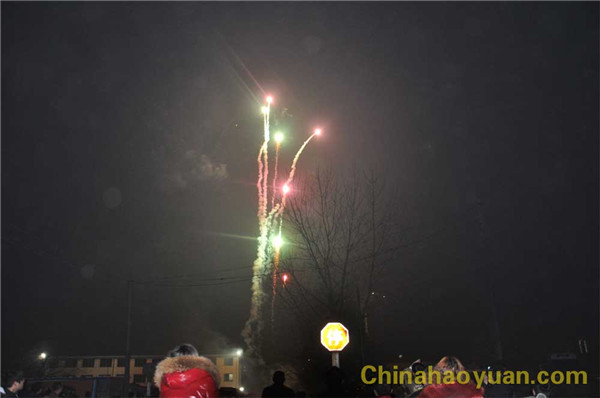 晚7时18分,元宵节焰火晚会拉开序幕,华球(中国)集团的夜空顿时被五彩缤纷的焰火装点得格外美丽。一束束礼花弹冲上夜空,流光溢彩,变幻多端,引人入胜。一瀑临空飞现,顿时银花飞溅,营造出“疑是银河落九天”的奇观。各种花卉造型的礼花姹紫嫣红,婀娜多姿,令人目不暇接,烟花燃放长达40分钟,给广大观众献上一道视觉盛宴。