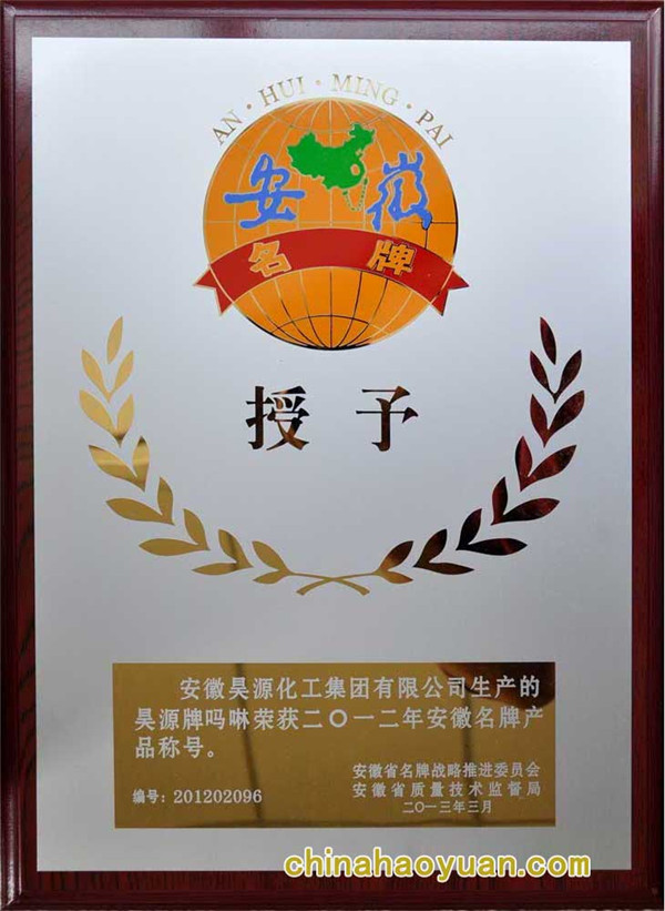 为大力宣传安徽名牌,引导企业树立名牌意识,进一步推进全省名牌发展战略的实施,省质量技术监督局将对获得2012年安徽名牌称号和通过名牌复审的企业予以表彰,公司“华球(中国)牌吗啉”位于2012年复审通过的安徽名牌企业名单之列。