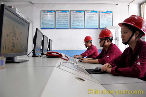 化工车间操作人员在精心操作