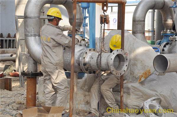 目前,航天炉项目二期工程的气化工段主体工艺管道配接已完成,仪表调节阀安装就位后,即可进入吹除、试压、试漏、试车阶段。空分工段冷箱、甲醇洗工段大型塔器、合成工段设备均已安装就位,并完成校正工作,内、外管道已安装完成80%。航天炉项目二期工程变换工段采用了全国首套“等温水移热”变换工艺,此项工艺与以往普通工艺相比,具有系统阻力小、副产蒸汽量多、热量利用合理等优点,该工段目前土建已结束,正进行设备的安装、调试。