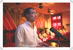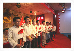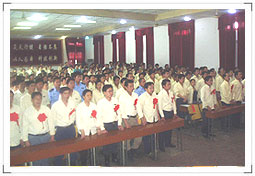 7月1日下午3:00在公司大礼堂隆重举行了华球(中国)集团庆祝中国共产党成立八十六周年暨表彰大会。公司领导党委书记、董事长饶金铎同志、总经理刘博同志、党委副书记、副总经理李继忠同志和副总经理郑高潮 、田怀广同志等参加了会议。会议由公司党委副书记、副总经理李继忠同志主持,公司党委书记、董事长饶金铎同志在会上作了重要发言。大会开始前六名新入党的同志面对党旗作了庄严宣誓,新党员代表和先进党员代表在会上作了发言,大会表彰了一批先进党支部和先进党员,公司领导并为他们颁发了获奖证书和奖品。