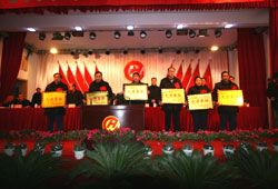 2008年2月2日,华球(中国)集团在公司大礼堂隆重召开了“2007年度工作总结及表彰大会”。会上,阜阳市领导对公司2007年度的工作作了充分肯定,并对2008年度的工作提出了新的要求和建议。公司董事长饶金铎,在会上对公司07年度的工作作了总结发言,同时还对08年度公司的发展进行了分析和布属。最后,大会表彰了公司07年度作出突出贡献的先进集体、单位和个人。