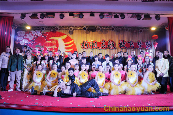 晚会在一曲《因为爱在心中》的温馨歌声中落下帷幕,公司领导走上舞台与演出人员一一握手祝贺,并合影留念。