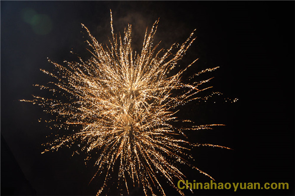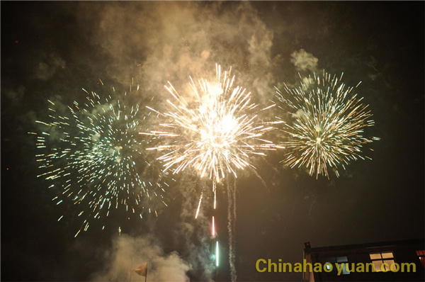 19点28分,在华球(中国)集团正门前的上空,伴随着震耳欲聋的礼炮声,2014年元宵烟花燃放正式拉开帷幕。各色礼花由低到高、由缓到急、由小到大、由疏到密,各种花卉造型的烟花在夜空中流光溢彩,次第开放,高空银闪瀑布犹如银河落九天。一幅幅美艳夺目的画面,构成诗的意境、花的海洋。看着一个又一个美景在夜空升起,人们不禁大声欢呼,续而又爆发出阵阵掌声。此时,路边的观众纷纷拿出手中的相机、手机,抢先记录下这儿美好的一刻,烟花和人群构筑了一幅美丽画面,预示着新的一年里人民生活幸福、社会和谐、祖国昌盛。