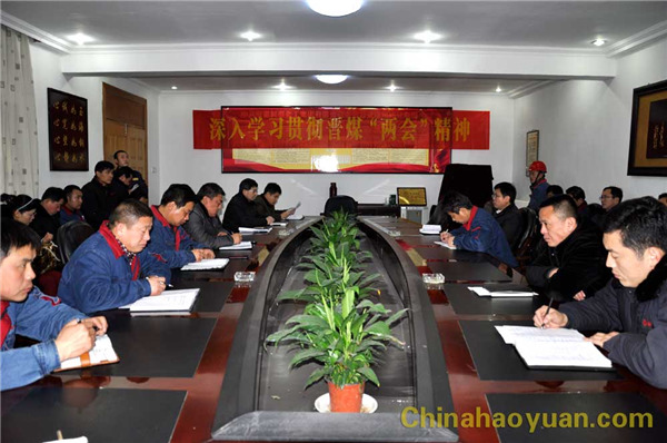 凡殿才首先和与会干部一起学习了集团公司党委书记、董事长贺天才所作的《突出改革创新 加速转型升级努力建设国际一流晋煤特色综合能源企业集团》的行政工作报告。报告指出,2013年,晋煤集团全体干部员工积极抢抓发展机遇,应对经济下行压力,强化生产经营管理,企业综合实力不断增强、安全生产平稳运行、产业转型稳步推进、项目建设加快实施、科技创新成效显著、和谐企业创建扎实开展,企业各项工作取得新的进展。但面对企业内外部新形势,集团公司要坚持“以煤为基、多元发展,建设国际一流晋煤特色综合能源企业集团”发展战略,着力构建“5315”战略体系,即:培育五个一流、彰显三大特色、突出一个目标、强化五大支撑。培育五个一流,即培育国际一流的发展理念、国际一流的创新能力、国际一流的管理水平、国际一流的品牌形象、国际一流的发展业绩。彰显三个特色,即:彰显独具晋煤特色的商业模式、独具晋煤特色的核心技术、独具晋煤特色的文化体系。突出一个目标,就是要构建以综合能源为主的现代产业体系,在我省建设国家综合能源基地的征程中,彰显主力军作用。强化五大支撑,即安全支撑、项目支撑、改革支撑、团队支撑、运营支撑。结合企业发展要求,2014年,晋煤集团工作的指导思想是:以科学发展观为指导,全面贯彻落实党的十八届三中全会、中央、全省经济工作会议和省“两会”精神,牢牢把握“稳中求进、改革创新”的工作总基调,以加快实施“5315”战略体系为主线,坚定不移地沿着以煤为基、多元发展道路前进,为建设国际一流晋煤特色综合能源企业集团而努力奋斗。围绕2014年工作指导思想和总体目标,要突出抓好六方面重点工作:要严细管理,尽心尽责抓好安全,强化安全意识,突出安全重点,夯实安全基础,引深安全文化,推动企业安全发展。要苦练内功,突出抓好市场开拓,动态优化生产组织,大力开展降本增效,切实加强资金和投资管理,有效应对严峻形势,确保经济平稳增长。要锐意进取,推进产业转型升级,强化多元发展支撑。要精心筹划,深化企业内部改革,充分激发发展活力。要注重创新驱动,以科技创新为引领,以管理创新求突破,坚持清洁生产,绿色低碳发展,走内涵式发展道路,提升企业竞争优势。要统筹联动,加强企业软实力建设,巩固和扩大教育实践活动成果, 提高党建科学化水平,加强人才队伍建设,强化党风廉政建设,抓好企业宣传思想工作,推进和谐企业建设,创优企业发展环境。