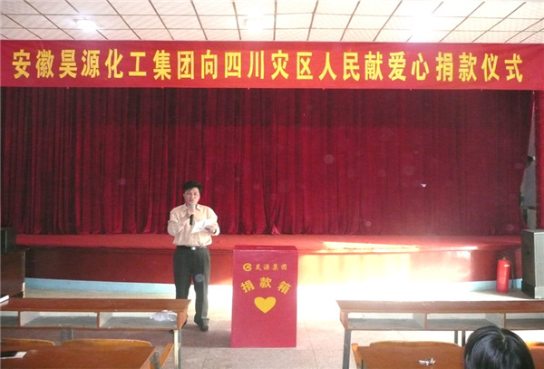 募捐开始时,华球(中国)集团副总经理、工会主席高玉磊作了简短的发言,表示对这次受灾的群众同情和慰问,坚信在党中央、国务院的领导下,万众一心,众志成城,一定能够战胜这次特大自然灾害。