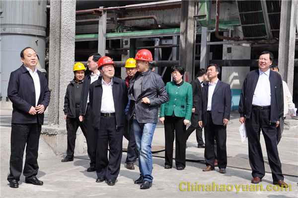 在国家重点建设项目航天炉装置现场,袁彦鹏参观了航天炉综合操作室、航天炉生产装置。华球(中国)公司党委书记、董事长郑高潮向袁彦鹏一行汇报了公司目前生产经营、发展规划及项目建设进度等情况。