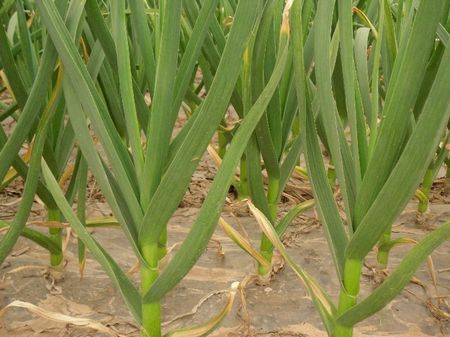 叶面追肥在秋大蒜生长发育期间,必须每7~10天叶面喷施一次0.1%硫酸镁、0.2%尿素、0.3%磷酸二氢钾、300倍硝酸钙、1000倍植物高效平衡营养液、1000倍天然芸苔素混合液,连续喷洒8~10次,均匀喷湿所有的茎叶,以开始有水珠往下滴为宜。